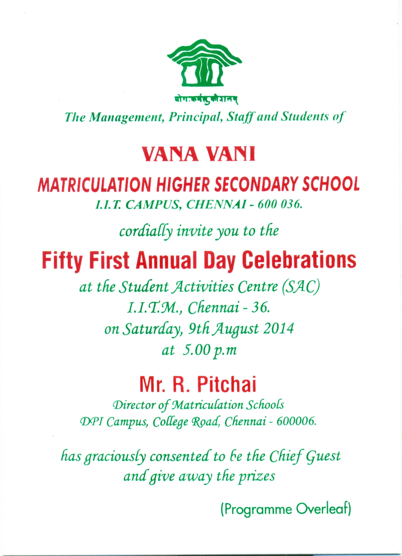The variety entertainment programme was presented by three sections of Vana Vani School. The theme of the programme was “Roots”.